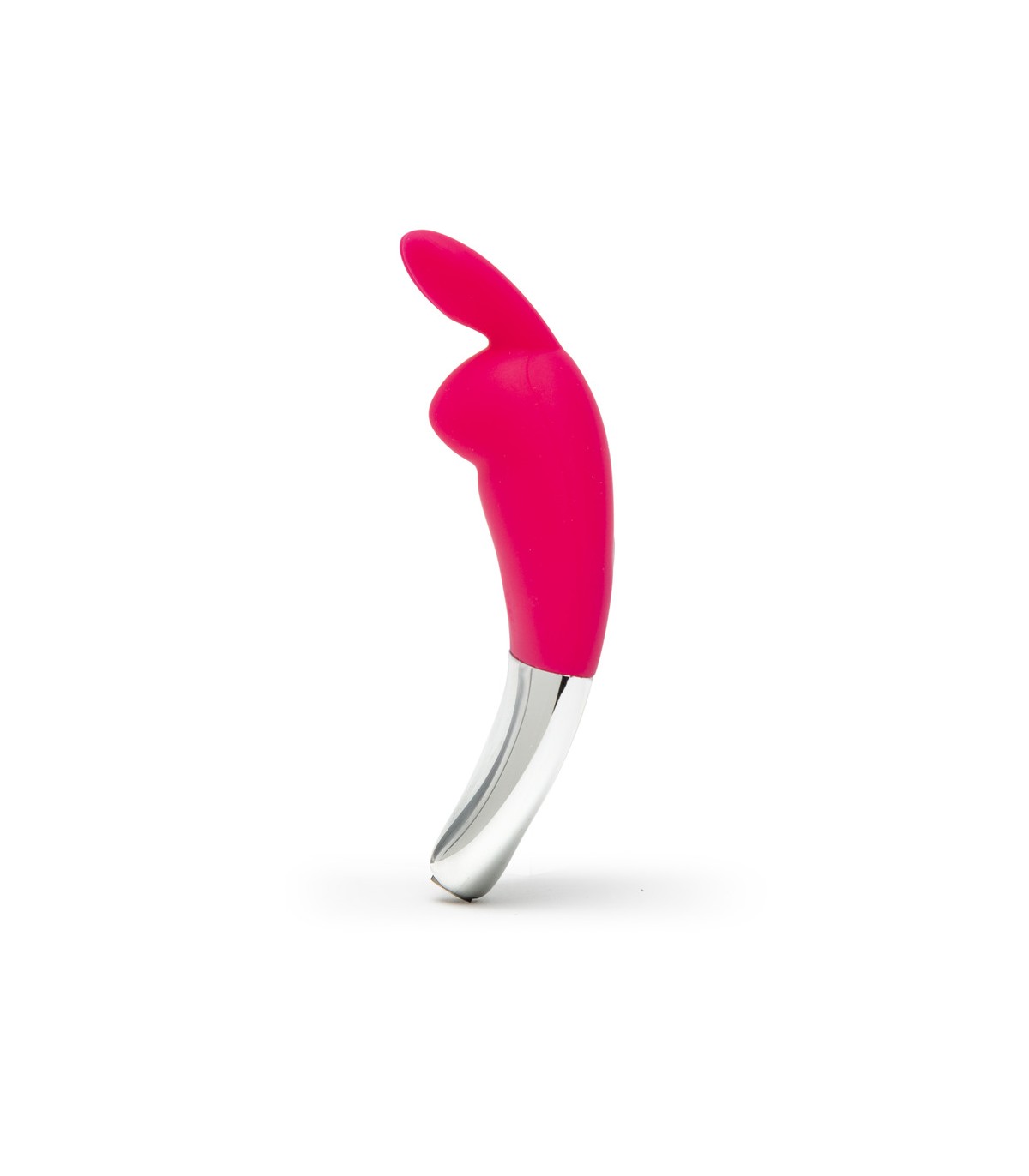 Mini Vibrator with ear-shaped stimulator made of very soft rechargeable silicone.