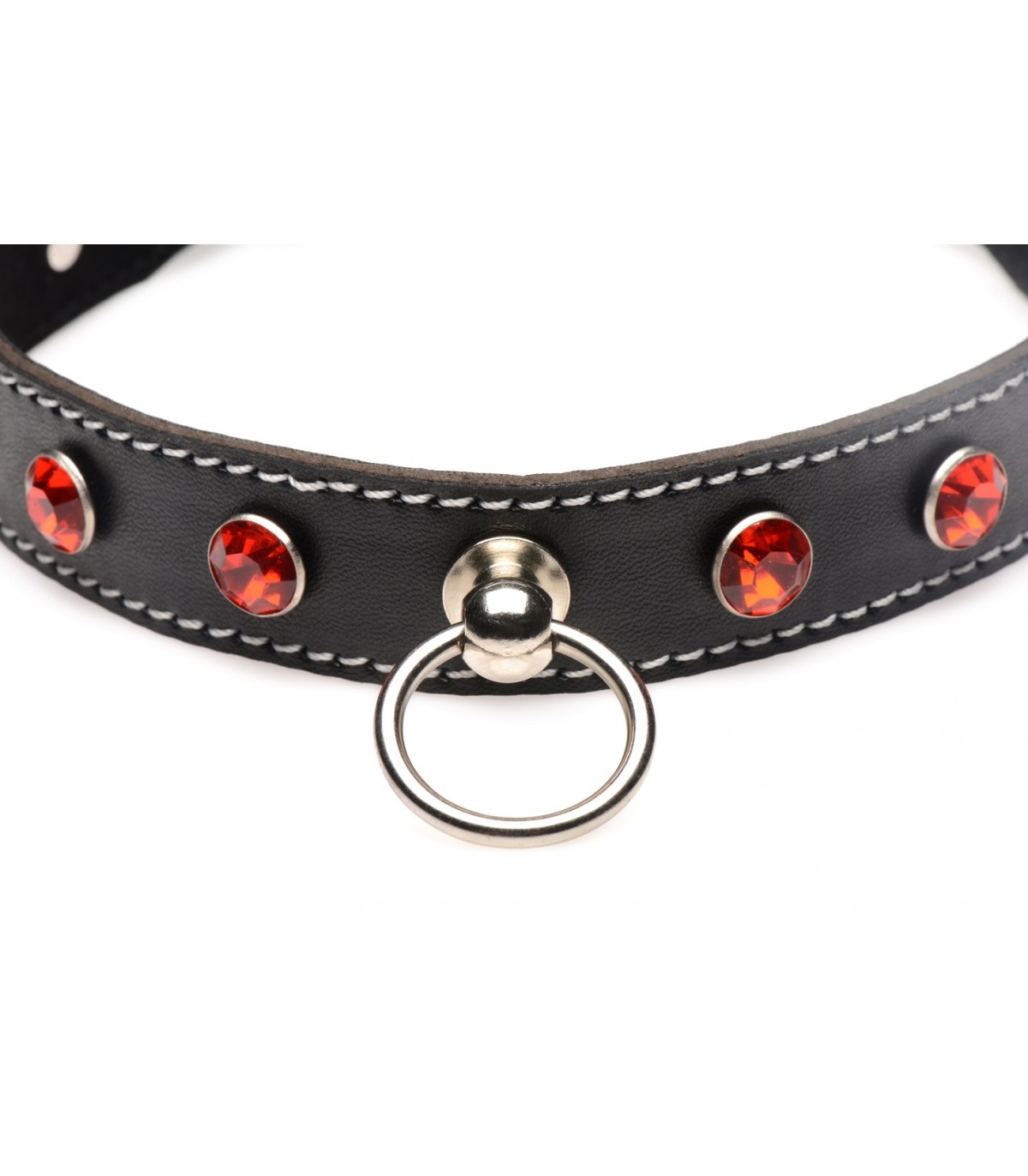 Cattura l'attenzione che meriti con questo girocollo in strass rosso! Gli strass abbaglianti catturano la luce mentre attiri l'attenzione del tuo partner con sfumature rosso sangue! Indossalo come accessorio o come dichiarazione! Questo collare sottomesso ha un O-ring privo di nichel attaccato al centro in modo che tu o il tuo partner possiate attaccare un guinzaglio; Lasciali andare in giro mentre ti pavoneggi con orgoglio, o lascia che tirino l'O-ring mentre ti abbracciano, ti baciano o ti tirano giù per fare atti subdoli e maliziosi!