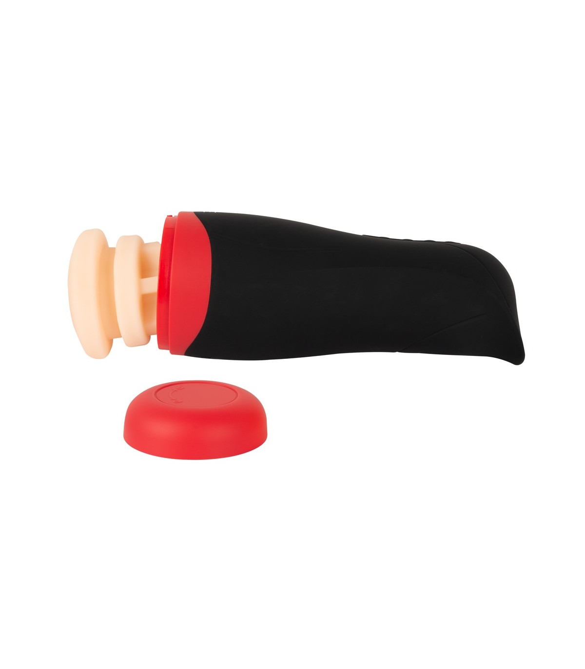 Il morbido materiale TPE all'interno fornisce una sensazione molto piacevolmente realistica durante la masturbazione. Il rivestimento morbido è rimovibile per una facile pulizia. Il masturbatore può essere conservato (polverizzato) in modo sicuro e discreto con il cappuccio protettivo incluso.