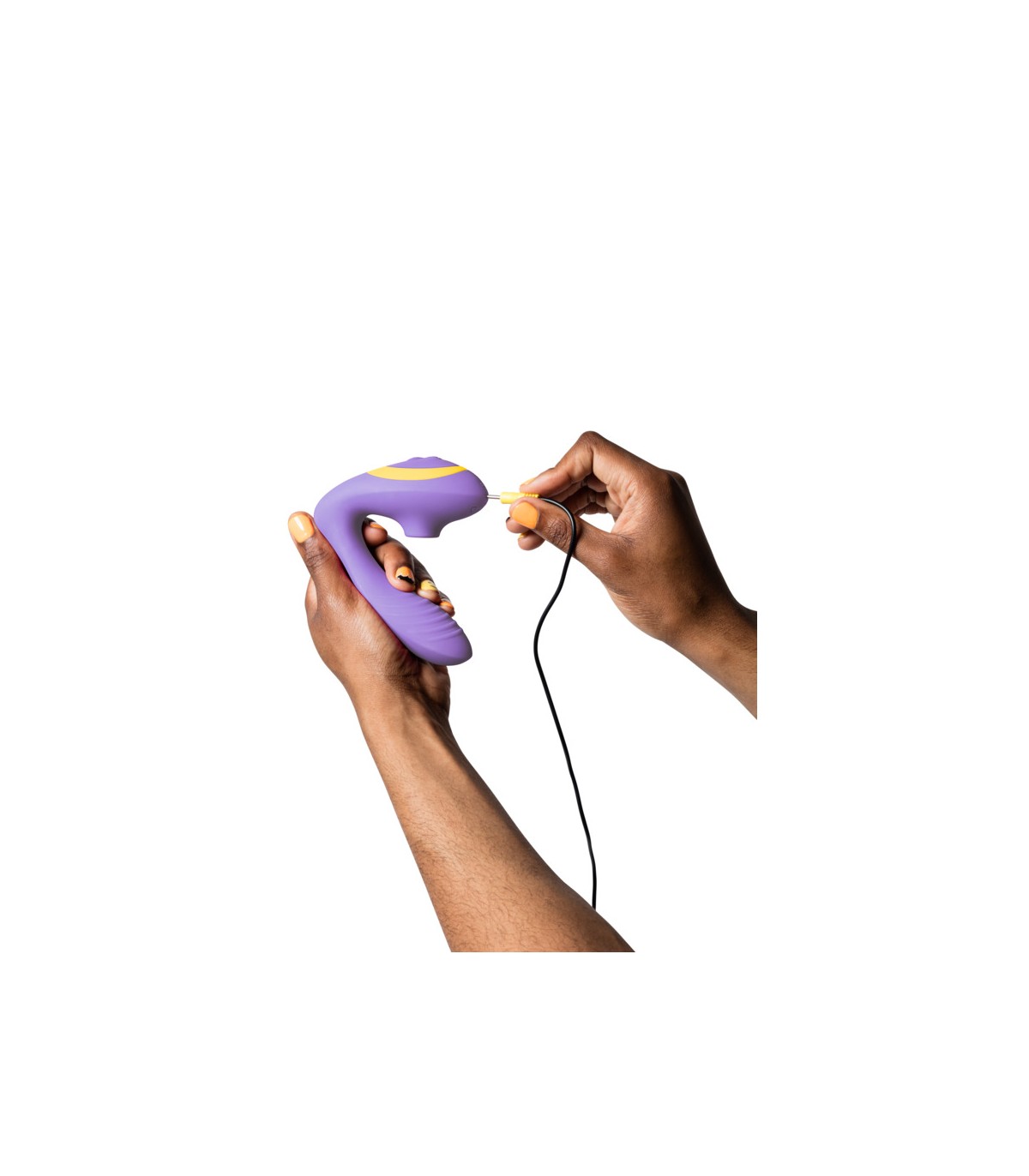 Entrambi gli elementi sono combinati per offrire due tipi di stimolazione, interna ed esterna, con cui si ottengono potenti orgasmi combinati. Offre dieci livelli di aspirazione, tre velocità di vibrazione, sette modelli di vibrazione e un blocco di sicurezza. Può essere ricaricato ed è impermeabile.