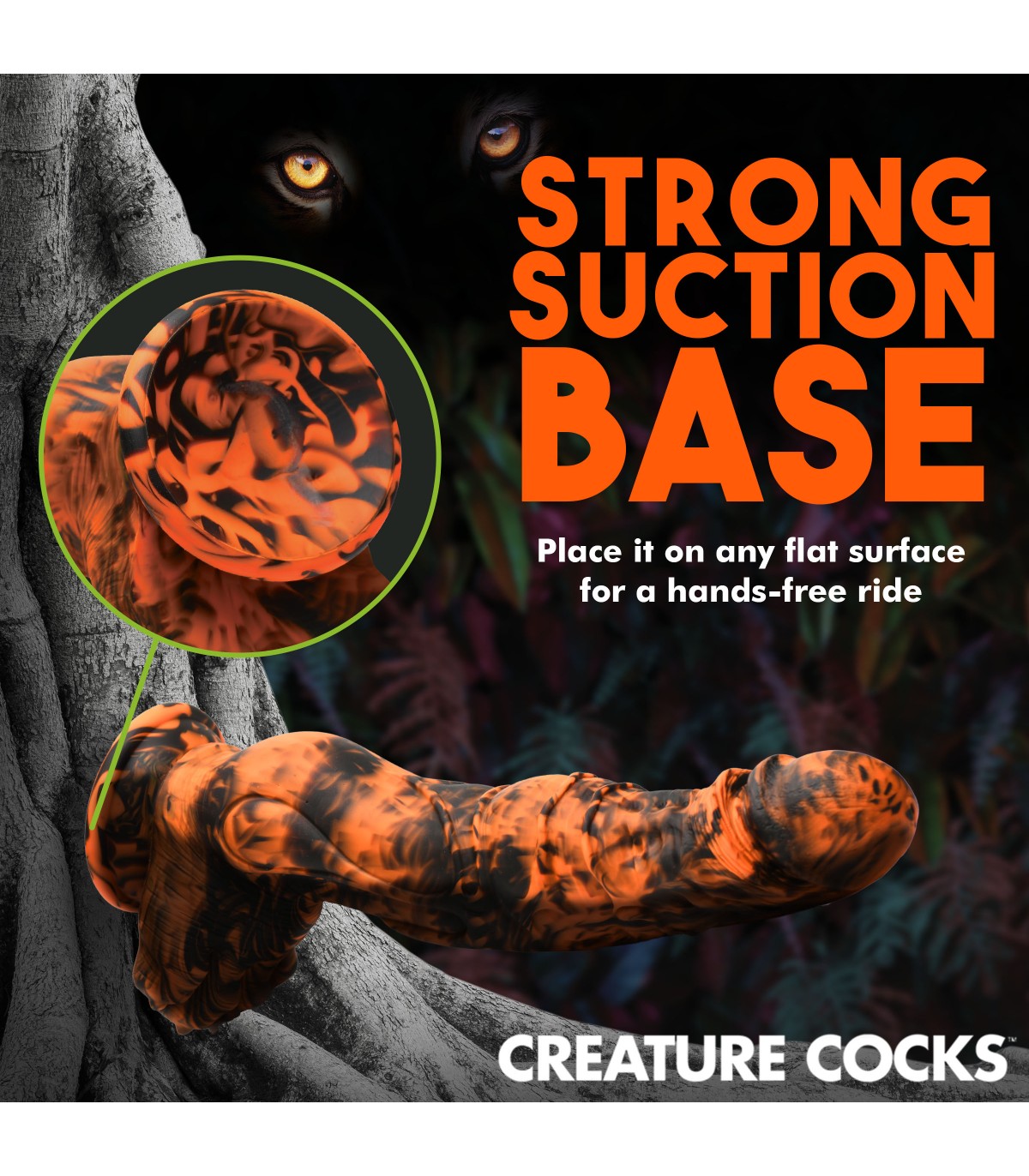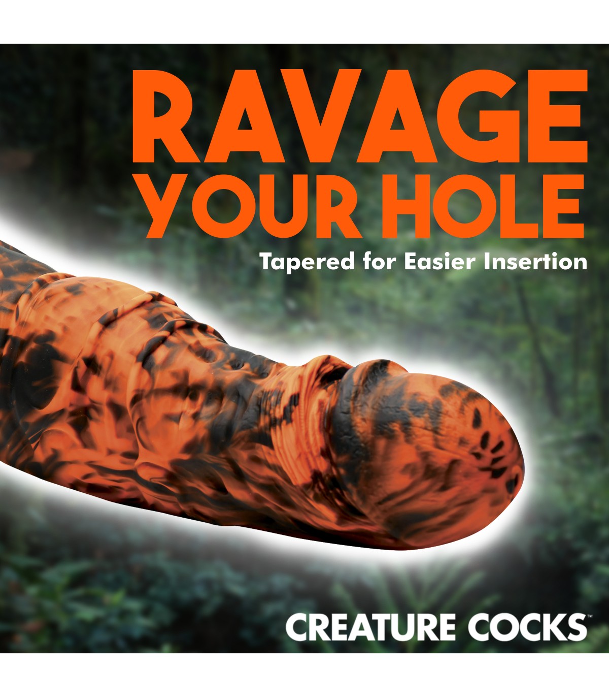 Creature Cock Dildo: con una consistenza mostruosa e un design mimetico arancione e nero, questo pene solido ma flessibile è qui per realizzare le tue fantasie! Ha nervature, linee, scanalature e trame che sono fuori da questa dimensione!