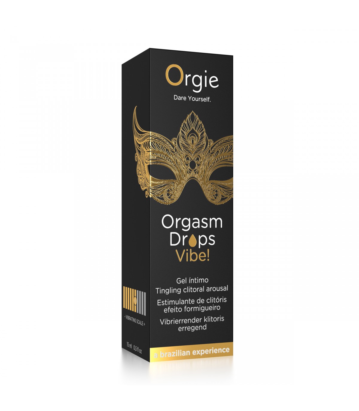 L'orgasmo fa cadere l'atmosfera! porta gli stessi effetti dei prodotti Orgasm Drops. È baciabile, sensibilizza il clitoride, favorisce una prima sensazione rinfrescante seguita da una piacevole sensazione di calore che porta ad un vortice di piacere ora potenziato dal suo nuovo effetto: la già famosa sensazione di vibrazione istantanea fornita dalla linea di prodotti Sexy Vibe! !