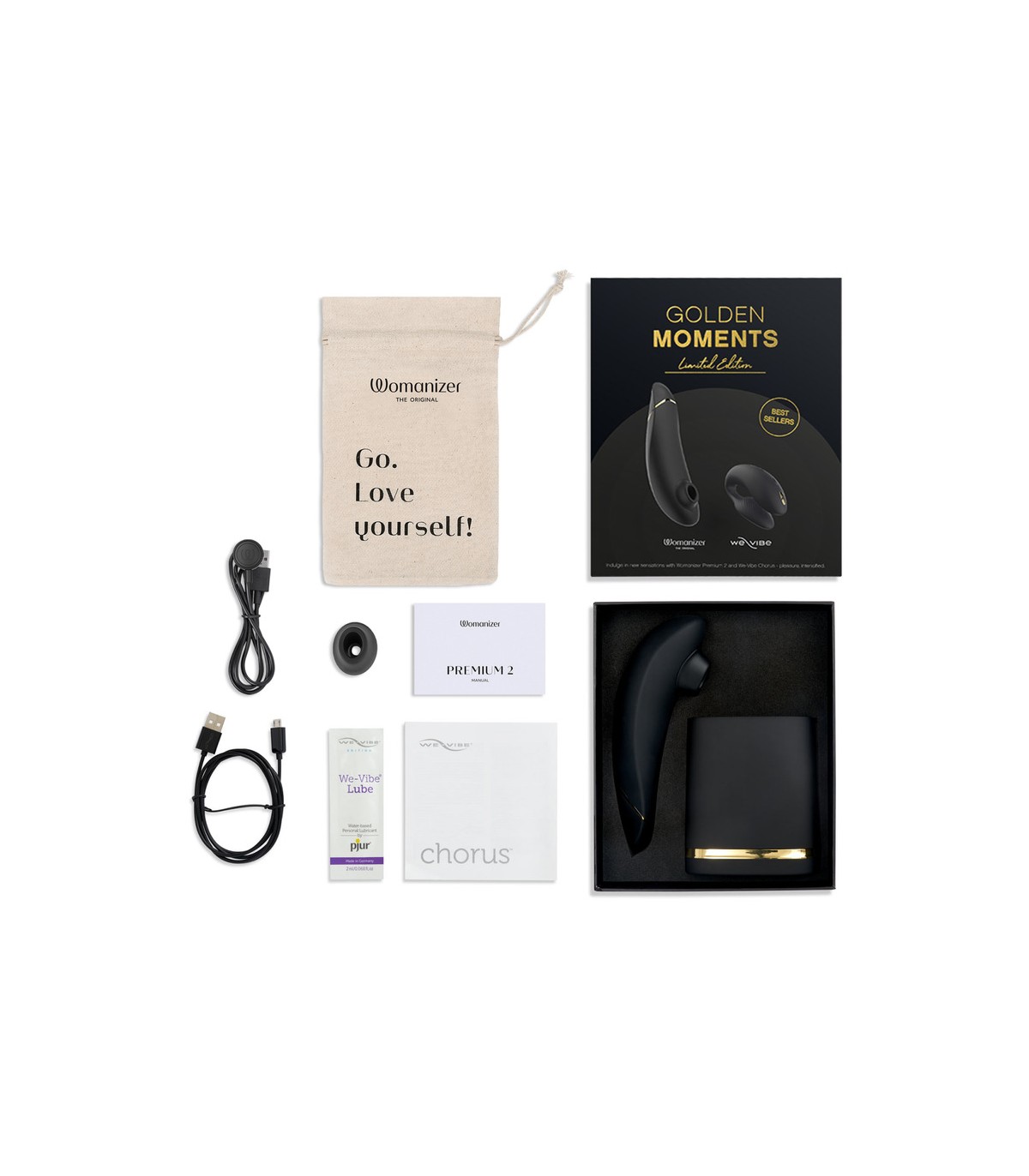 Kit composto da We-Vibe Chorus e Womanizer Premium 2 in nero.