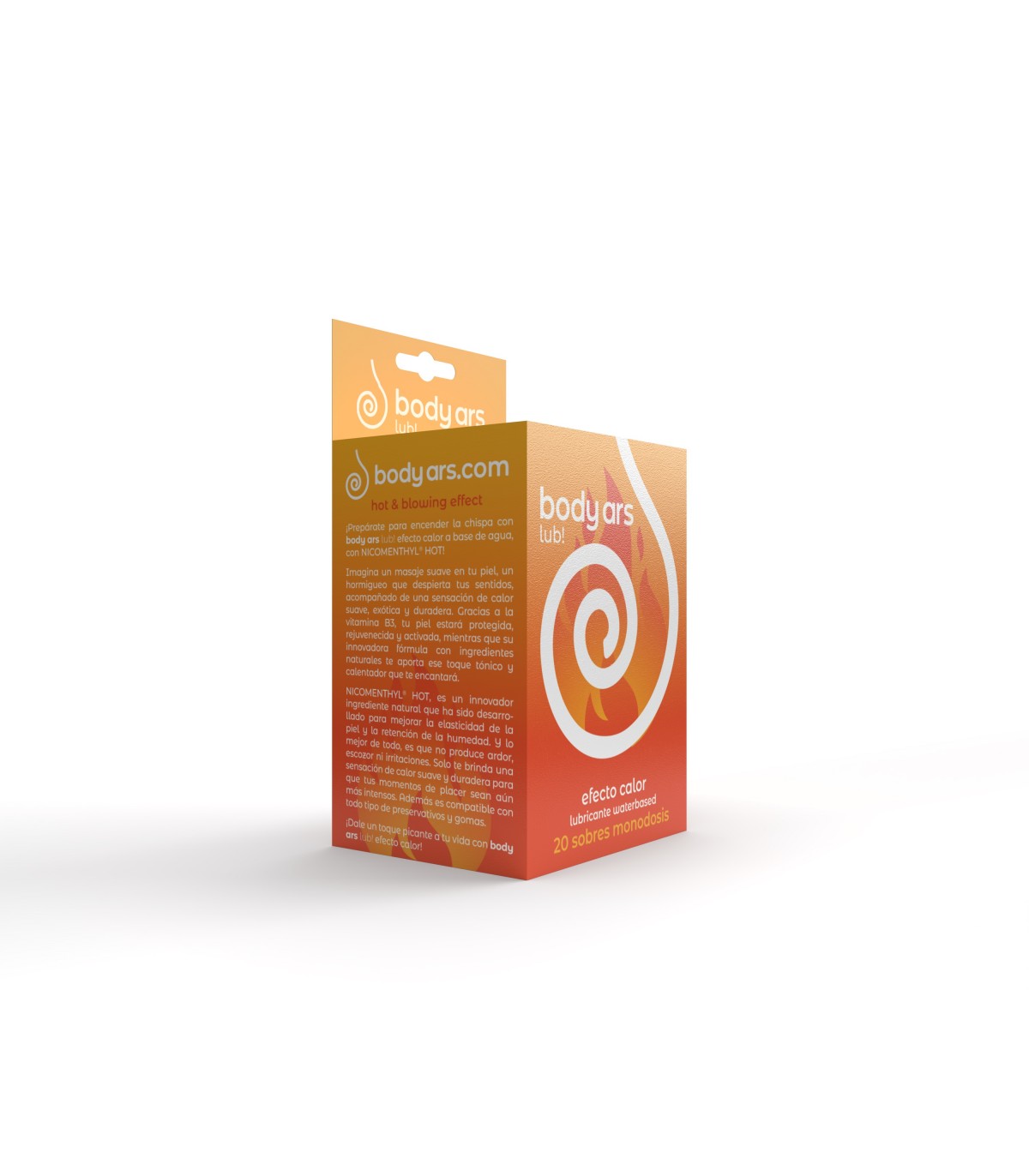 Presentiamo il primo lubrificante ad effetto termico a base d'acqua con NICOMENTHYL® HOT, Body ars hot è un lubrificante senza conservanti, appositamente bilanciato che combina le proprietà protettive, antiossidanti e vasoattive della vitamina B3,