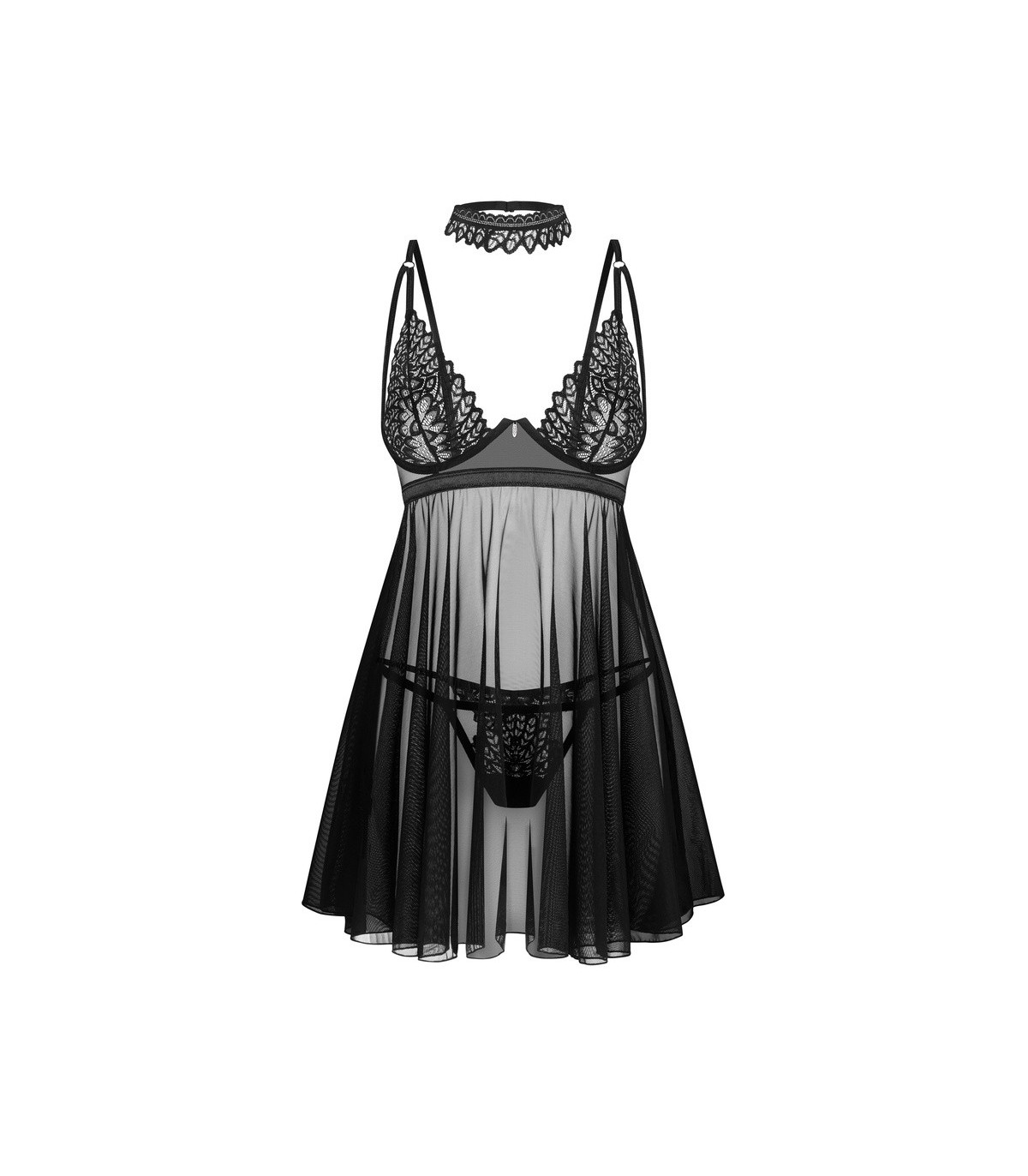 Crea un'atmosfera straordinaria durante il tuo prossimo appuntamento romantico! Questo babydoll discreto metterà sicuramente in risalto le tue risorse. Controllalo! Il tessuto velato abbraccerà delicatamente la tua pelle, garantendo libertà di movimento e comfort. Preparati per un'esperienza indimenticabile con questo set Donarella!