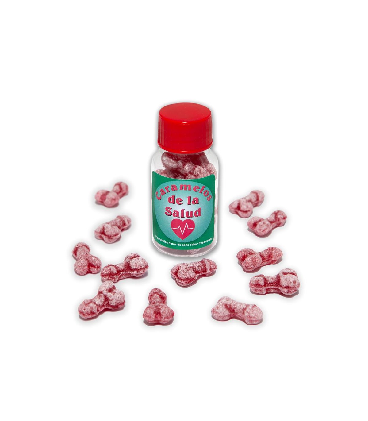 Barattolo da 12 caramelle dal peso di 25 grammi, a forma di pene al gusto di fragola e ciliegia di colore rosso intenso dallo straordinario sapore di fragola e ciliegia che adorerà le bocche più esigenti. Le ciliegie sono i frutti più sexy e afrodisiaci insieme alle fragole. Prodotto qui in Spagna da un'azienda molto prestigiosa. È ideale da mangiare con gli amici da regalare in ogni occasione, per divertirsi al sapore di fragola e ciliegia. Mettimi alla prova non te ne pentirai. Dolce con grazia non fa male. Con frasi molto divertenti, ce ne sono 10 diverse, scegli la tua da regalare.