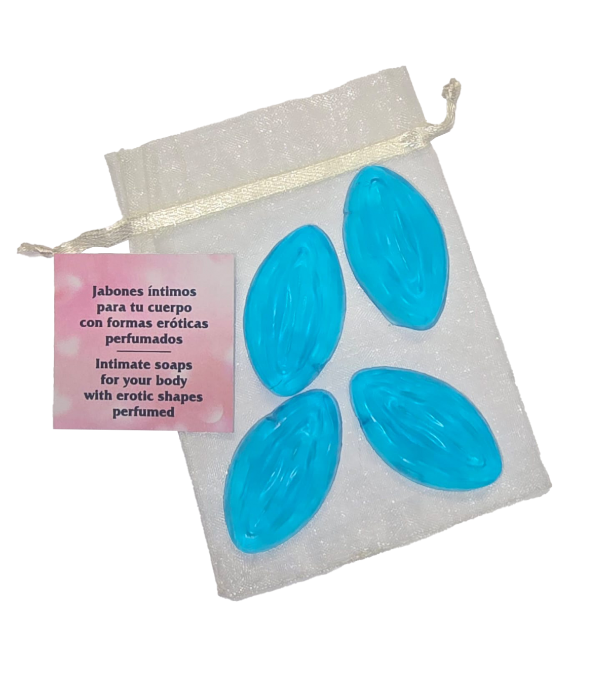 Sono 4 mini saponi (45 mm x 25 mm x 15 mm di spessore) a forma di vagine arancioni dall'odore oceanico, in un sacchetto di organza, questi saponi possono essere utilizzati come gel intimo per le parti intime o per le mani, oppure come un deodorante per ambienti (da portare nello specchietto dell'auto) o da mettere dentro i vestiti affinché abbiano un buon profumo o come decorazione in bagno o da regalare. Sono saponi alla glicerina vegetale e glicerina cristallina, saponi d'autore realizzati a mano, in modo artigianale esclusivamente con oli vegetali (cocco, oliva, palma, ecc.) saponificati a freddo, attraverso il nostro procedimento artigianale. Tutti i saponi sono arricchiti con i principi attivi che danno loro il nome (rosa canina, alo vera, argan,...) e profumati con un'alta percentuale di profumi, oli essenziali di altissima qualità. Consapevoli dell'importanza di utilizzare prodotti naturali, benefici per la salute e la cura della nostra pelle, realizziamo i nostri prodotti con la sicurezza di offrire il miglior sapone al mondo, realizzato con ingredienti di prima qualità, morbidi, naturali e vegetali rispettosi dell'ambiente. Certificato n. 17050007 per il rispetto delle buone pratiche di fabbricazione (GMP) per i prodotti cosmetici secondo la norma UNE-EN ISO 22716