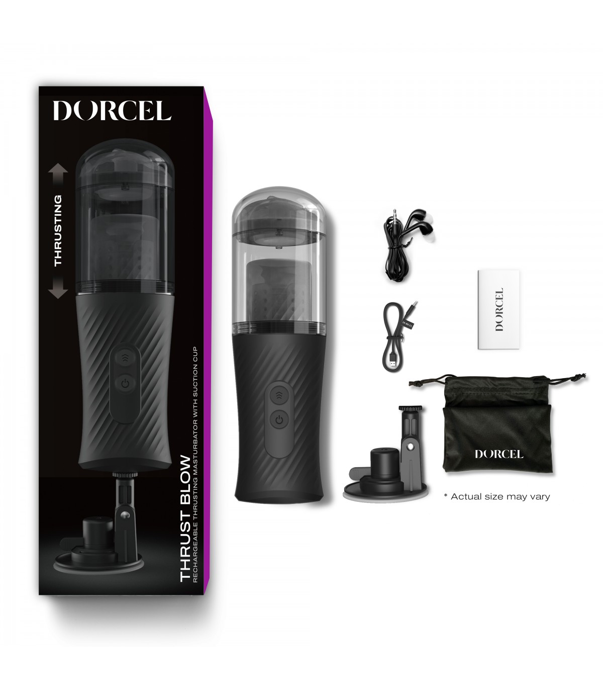 Sei pronto a portare il tuo piacere solitario al livello successivo? Ecco Thrust Blow, un nuovo masturbatore automatico di Dorcel. Il suo principio si basa su un movimento automatico e regolare di avanti e indietro che permette di vivere un'esperienza il più vicino possibile alla realtà. La sua potente ventosa consente un'ottima tenuta su qualsiasi superficie liscia. Senza ventosa, il Thrust Blow si trasforma in un masturbatore tradizionale. Metti le cuffie e chiudi gli occhi, è un biglietto di sola andata per il settimo cielo. Non è più possibile fare una distinzione tra i tuoi sogni e la realtà. Realismo, fantasia, tradizionalismo: questo nuovo giocattolo ha tutto ciò che serve per decuplicare il tuo piacere!