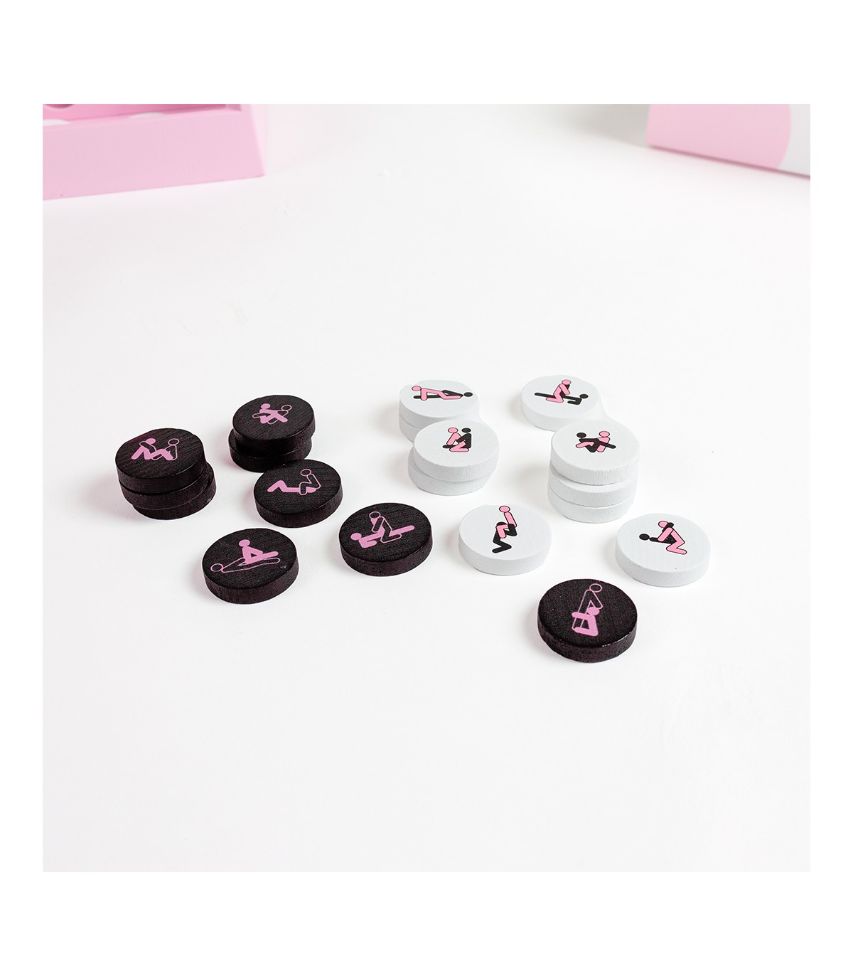 - 42 carte (21 carte bianche e 21 carte nere), ciascuna con una diversa posizione del Kama Sutra.