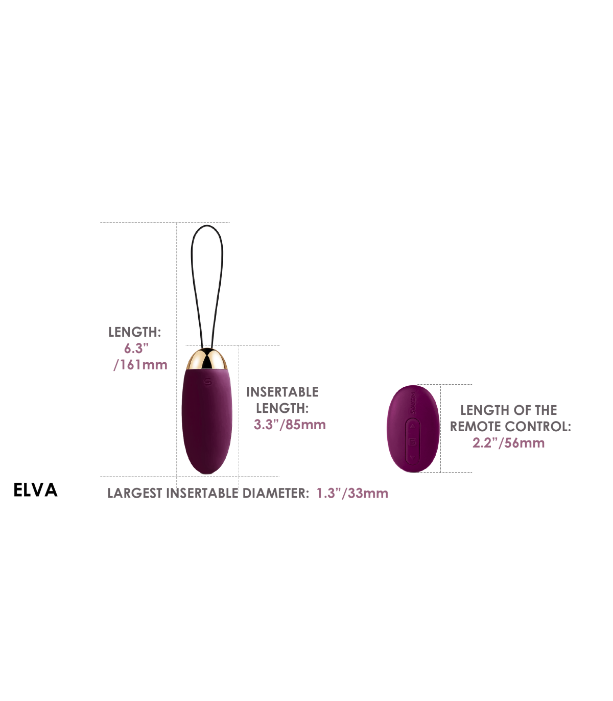 Elva è dotata della modalità intelligente SVAKOM, che imita accuratamente la frequenza di vibrazione durante l'intero processo sessuale, dall'inizio all'orgasmo. Con un semplice clic sul pulsante S inizia un'incredibile avventura sessuale. Dai timidi preliminari alle provocazioni sensuali, dalle intense pulsazioni ai molteplici orgasmi, questa è un'esperienza sessuale paradisiaca che non vorrai perderti. Elva può essere utilizzata con o senza telecomando. In questo modo aumenterai l'interazione tra te e il tuo partner. Elva è dotata di un cordoncino nella parte superiore, facile da rimuovere dopo l'uso. Inoltre, funziona come antenna per ricevere comandi/segnali dal telecomando. Elva è resistente agli schizzi di livello 6. Il suo livello di resistenza all'acqua 6 significa che Elva è protetta contro potenti getti d'acqua.