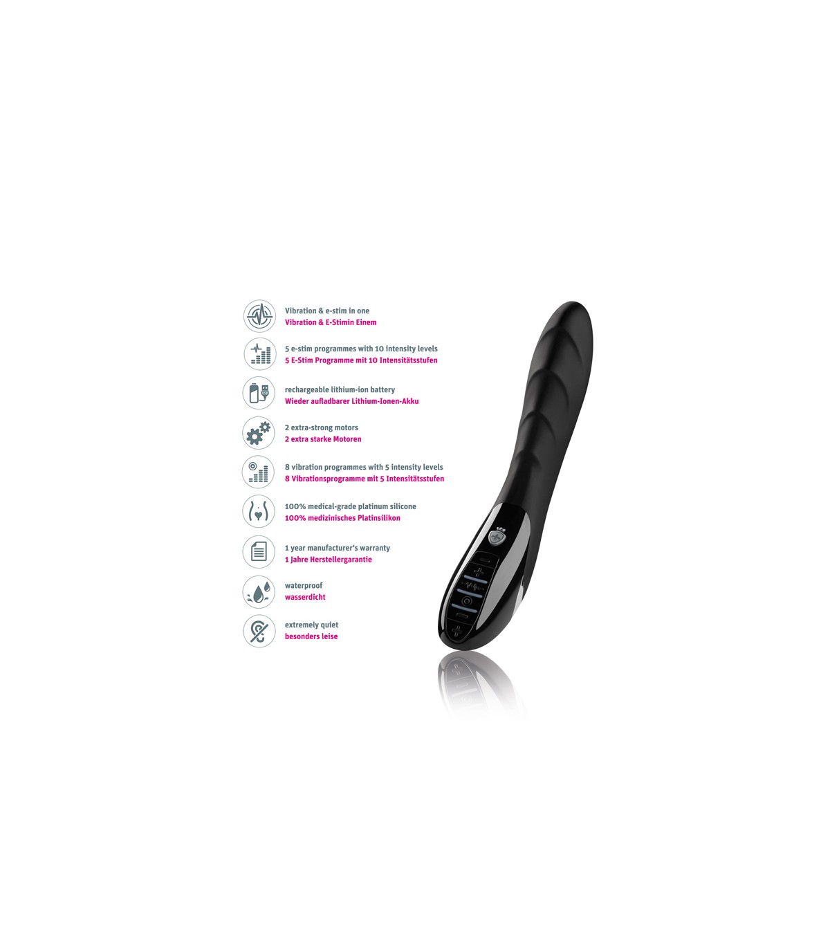 • Il silicone medico offre una sensazione piacevole e un'elevata tollerabilità cutanea