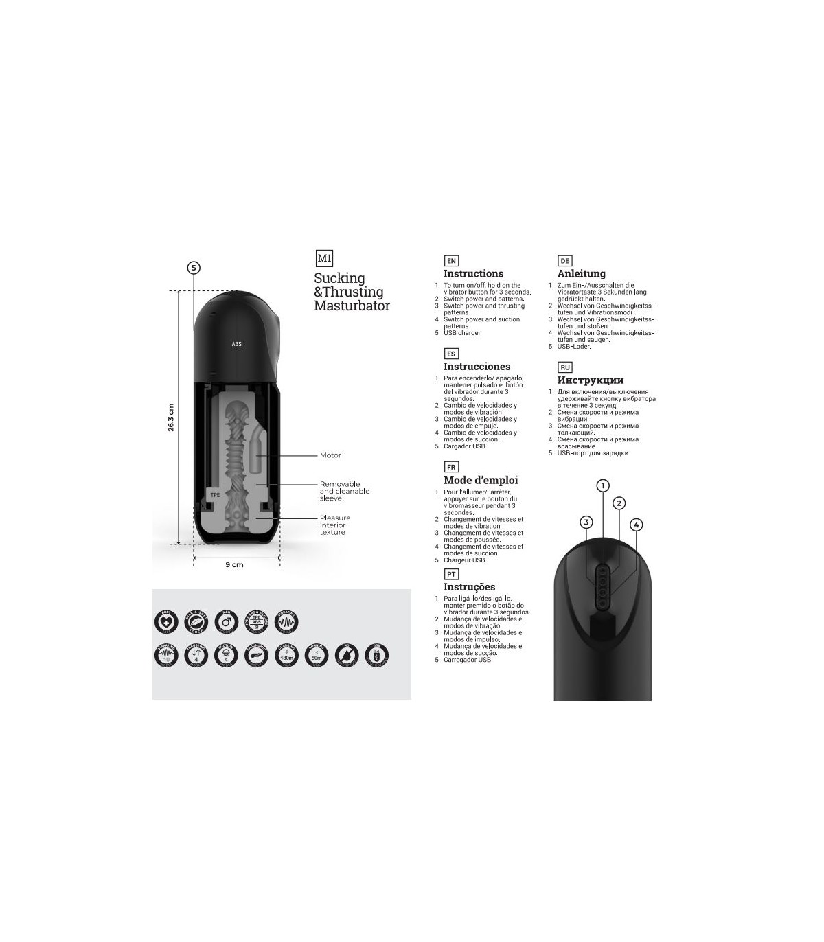 - 10 modalità di vibrazione, 4 modalità di aspirazione e 4 modalità su e giù.