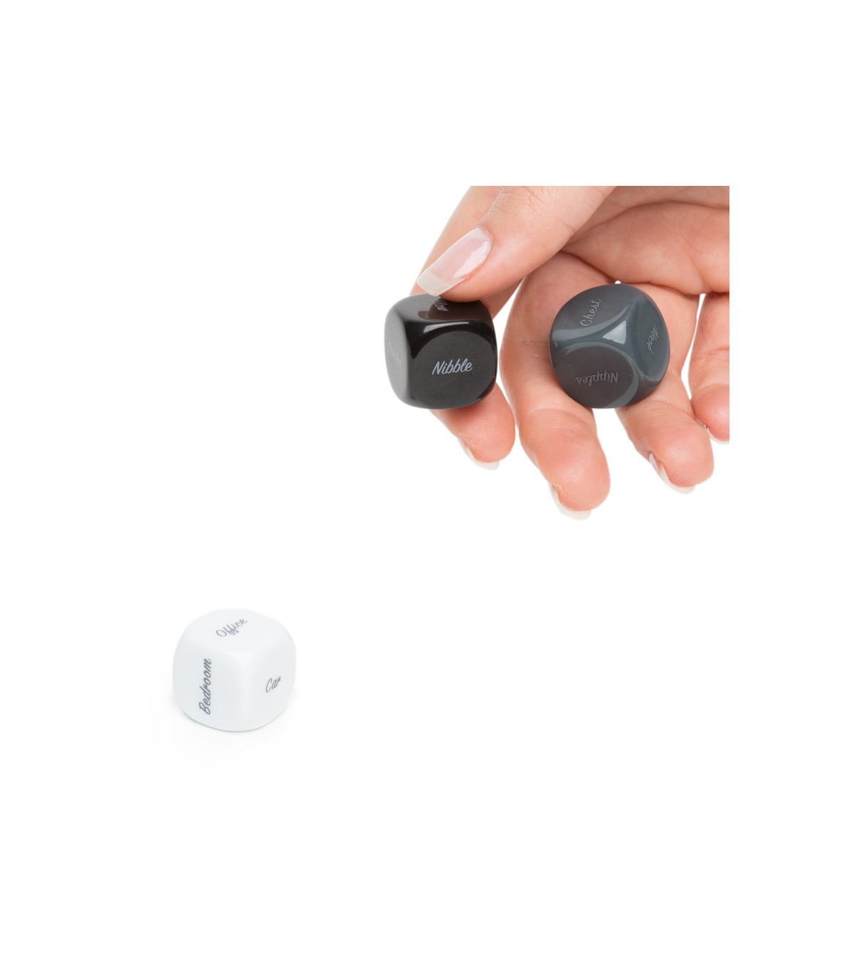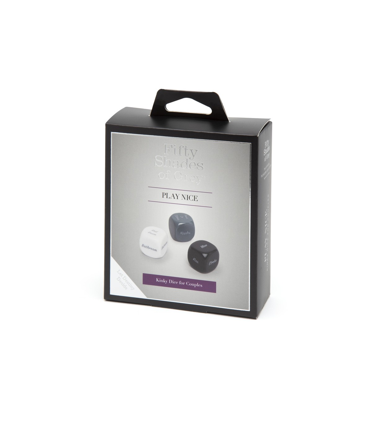 Dai il via a una notte di scoperta erotica con questi tre dadi per coppie ispirati alla trilogia Cinquanta sfumature. Con questo seducente gioco d'azzardo, tu e il tuo amante vivrete un'avventura sensuale piena di divertimento e realizzazione personale.